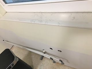 Yesterday the backerboard went down and I put the new sink and faucet in:
